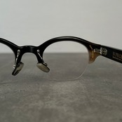 アセテート用のウォーマーで長めに温めていただく事で曲げ伸ばし等の調整も可能です。フロントもテンプルも横に繊維方向があります。テンプルは繊維方向に逆らって縦に鋭角に曲げてしまうと破損の原因になります。繊維方向に沿って内寄せする曲げには強いので、スポーツサングラスのように抱き込むフィッティングが望ましいです。鼻あてやテンプル開き・高さの調整が必要な箇所には、金属パーツを採用しております。