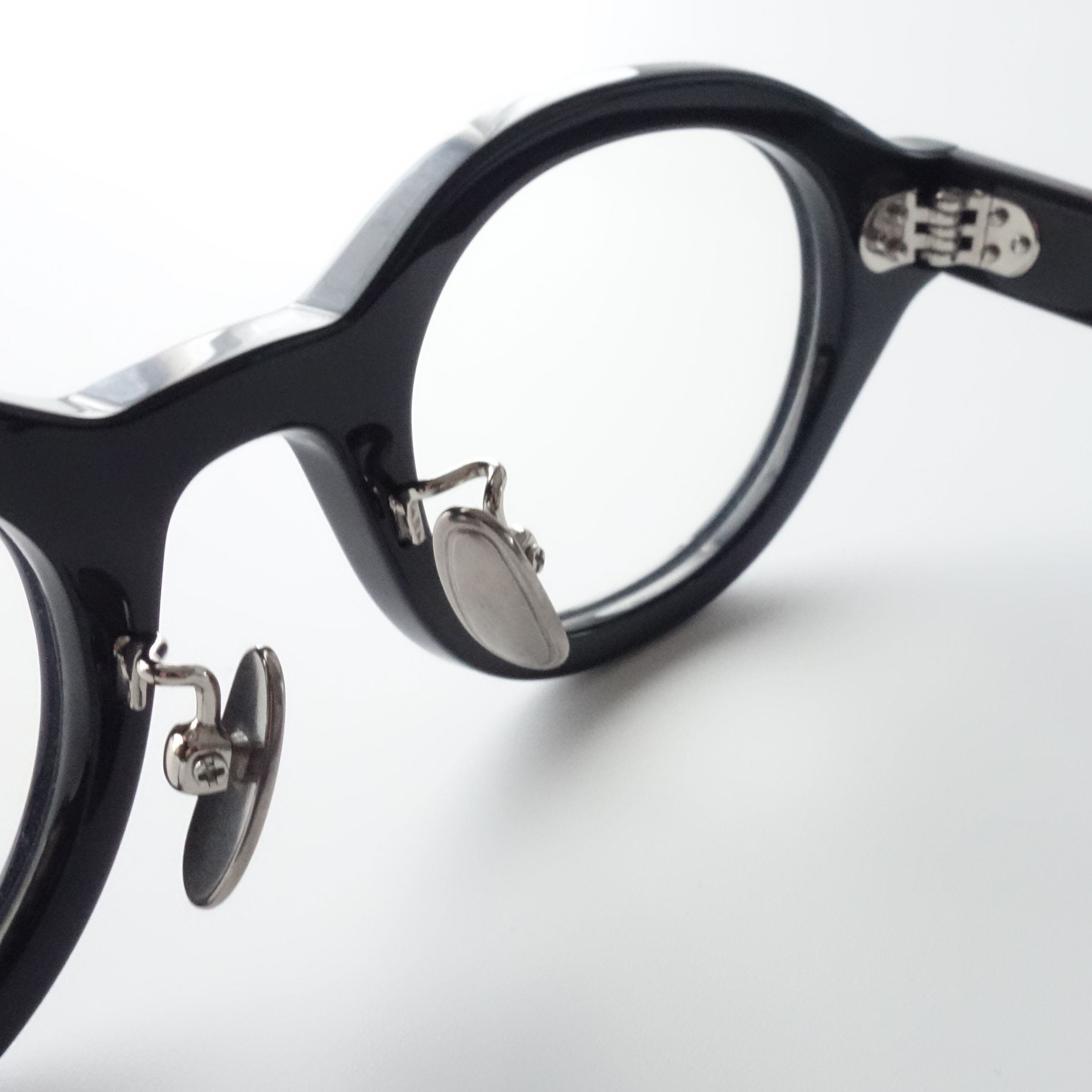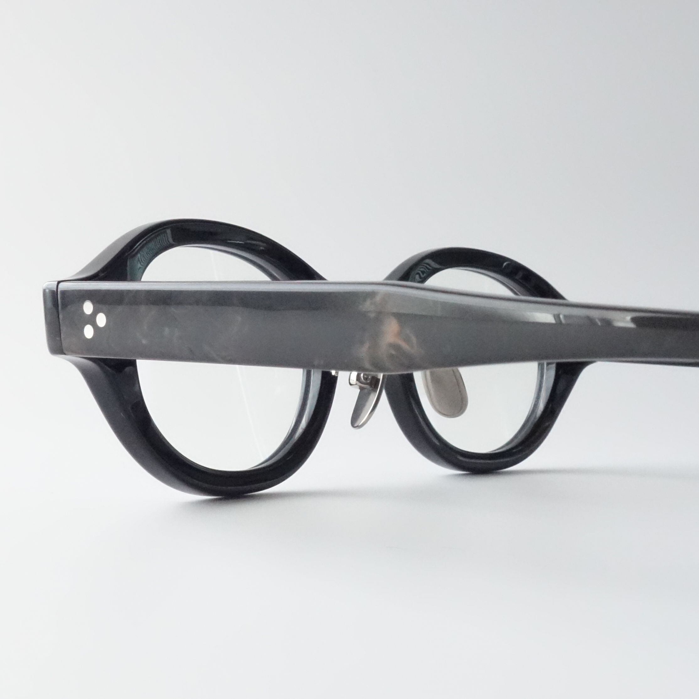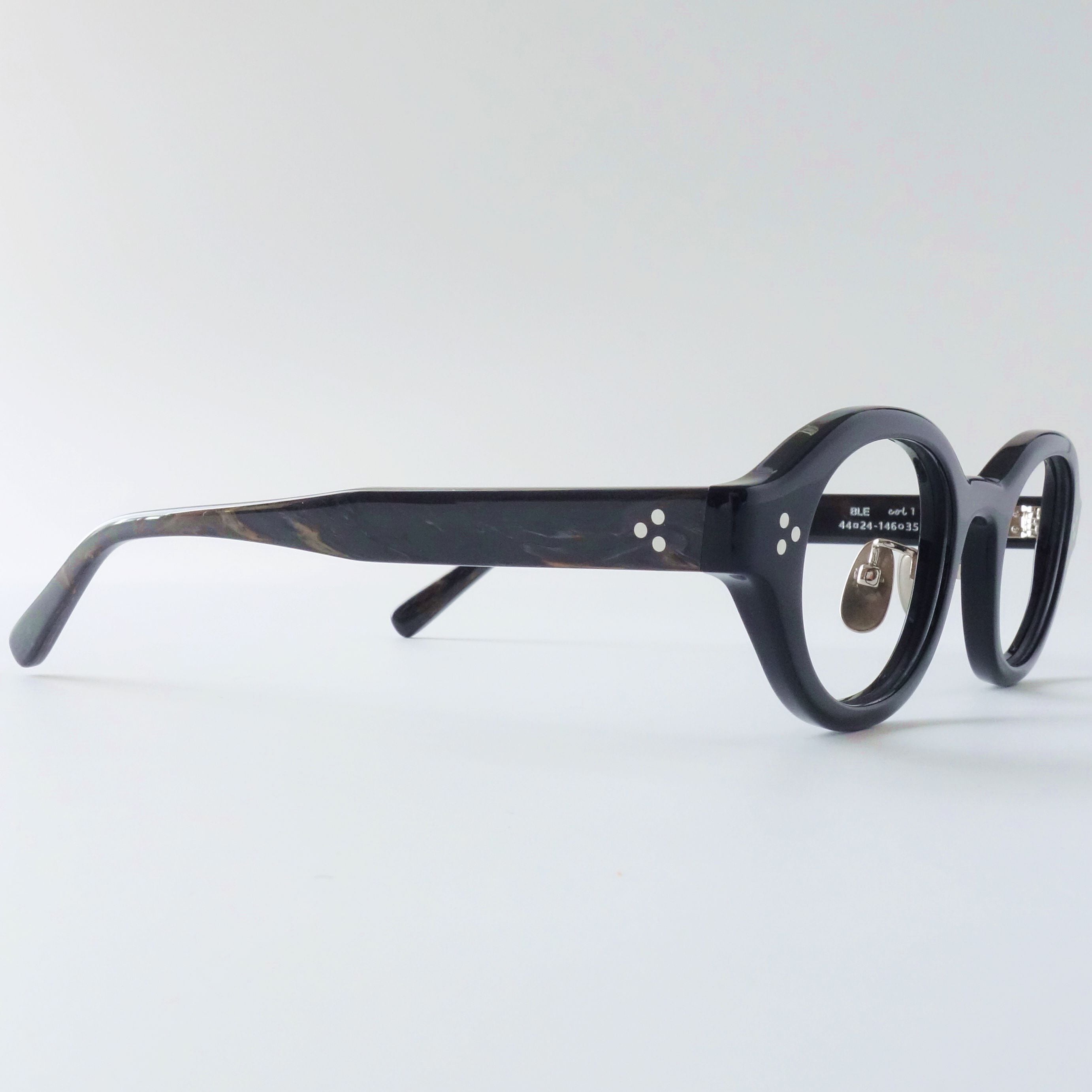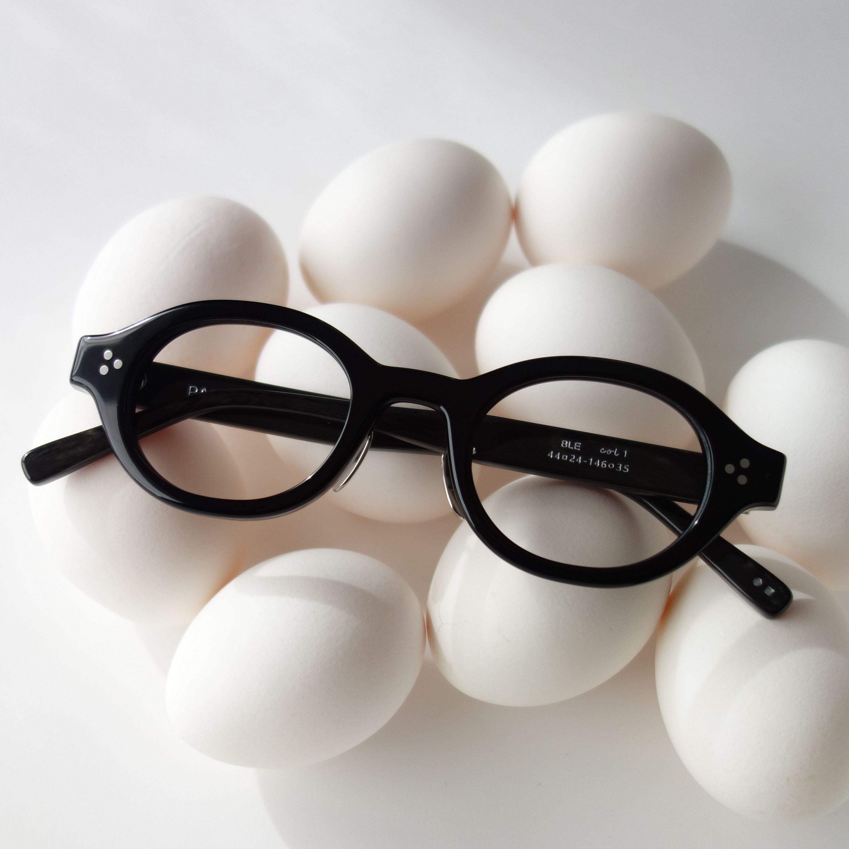 BLE(ブル)はBLEは卵の丸みをヒントにデザインしております。柔らかい曲線で構成された形状は、日本人の目元や骨格と相性が良く、やや大きめのサイズ感でボリュームを持たせることでポップな印象に仕上げました。PADMA IMAGEの初期モデルMARBLE(2014)をベースに今の時代に合わせてリデザインしております。他のジオメトリー(幾何学)コレクション同様に3ピン鋲の7枚丁番にチタンパットが程よく重厚なイメージ。テンプルエンドにはブランドのコンセプトである「幾何学と非対称」を象徴する●■が刻印されています。