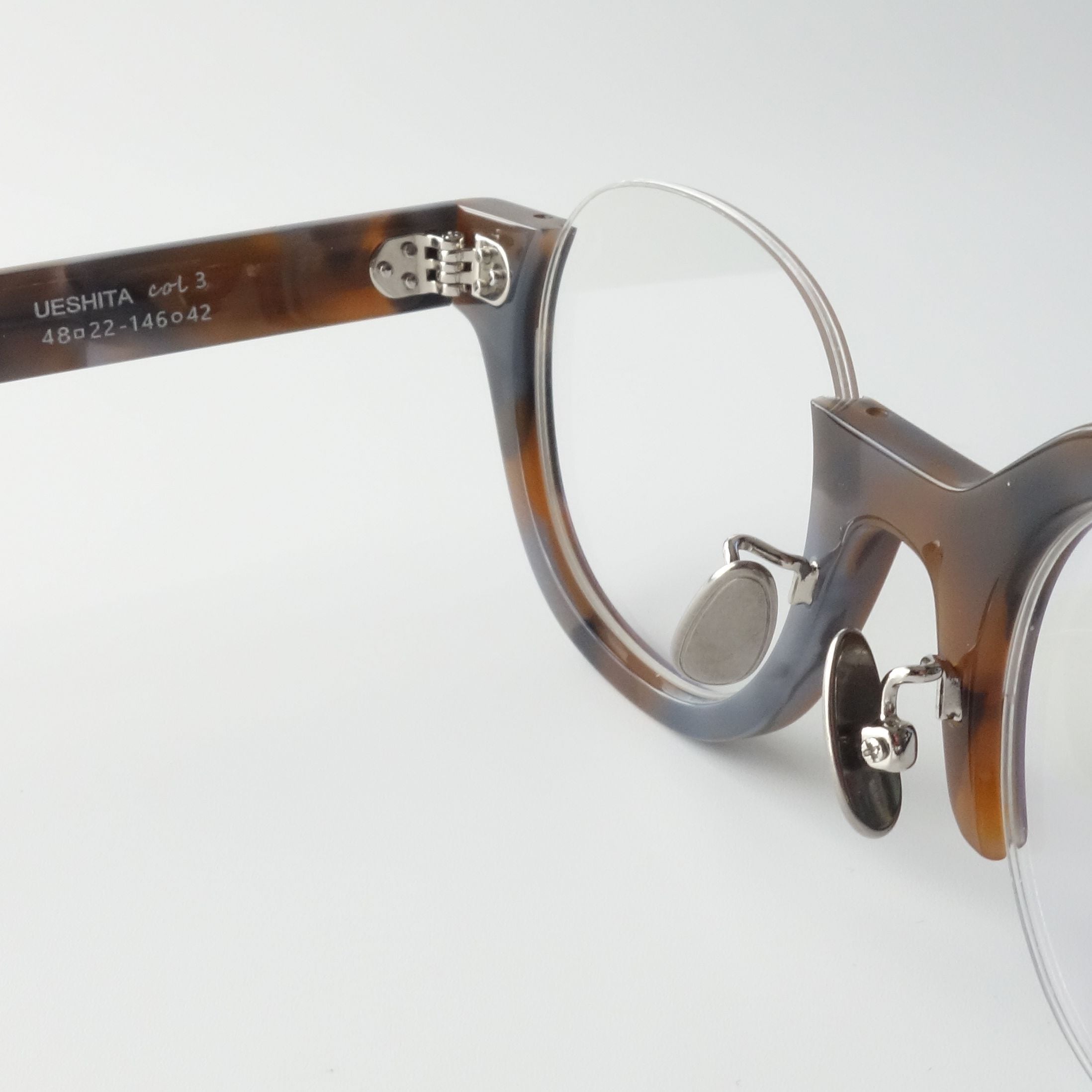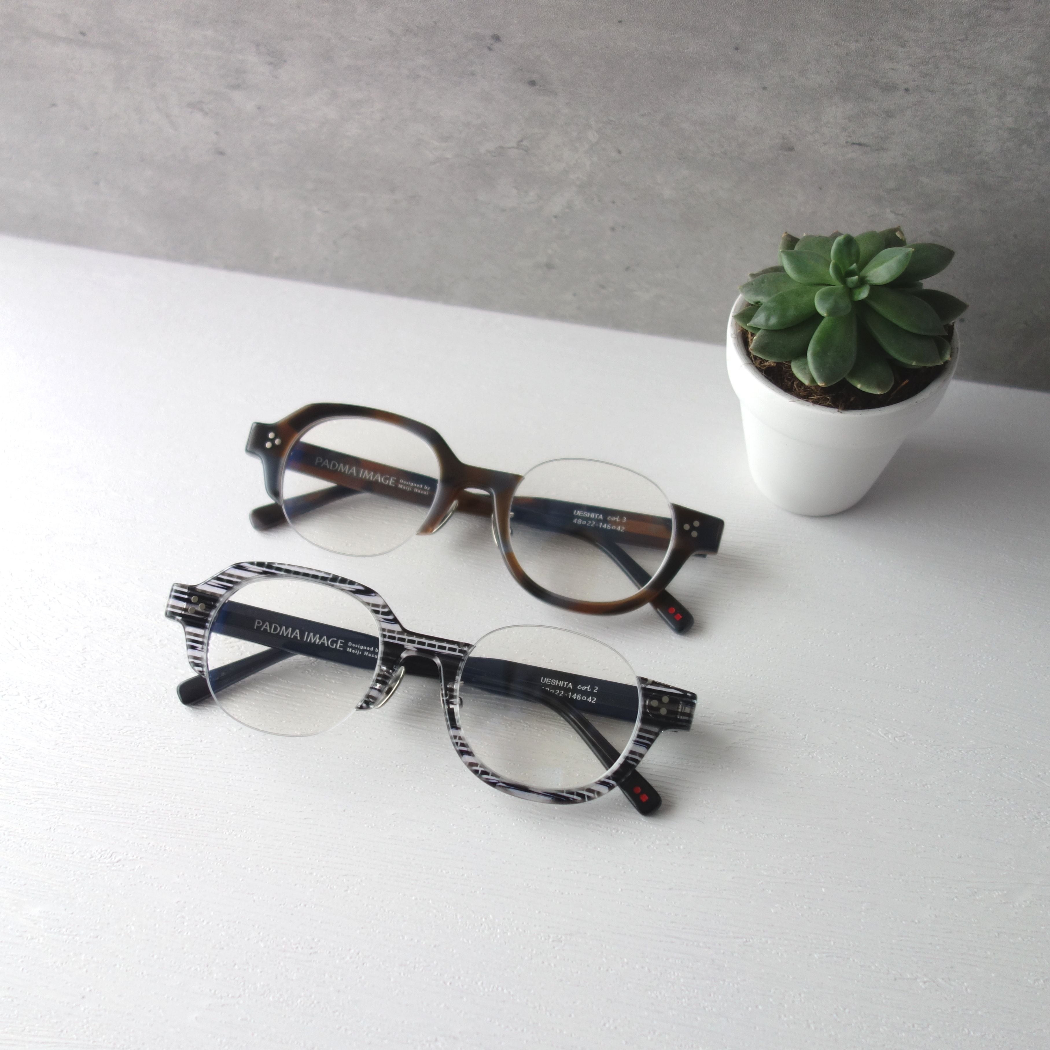UESHITA(ウエシタ)はPADMA IMAGE5周年記念として発売された Ue-Shita(2016)の後継モデルです。パドマイメージの中でもファンの多いウエシタは、名前の通り上と下に分かれたアシンメトリーデザインが特徴です。整ったクラウンパント型の上下をそれぞれカットすることで、不思議な違和感が生まれます。アシンメトリーコレクションはこの「違和感」を大事にしております。思わず二度見してしまうようなアンバランスを楽しんで頂ければと思います。アイコンの●■はアシンメトリーコレクションのみ赤く色付けしております。