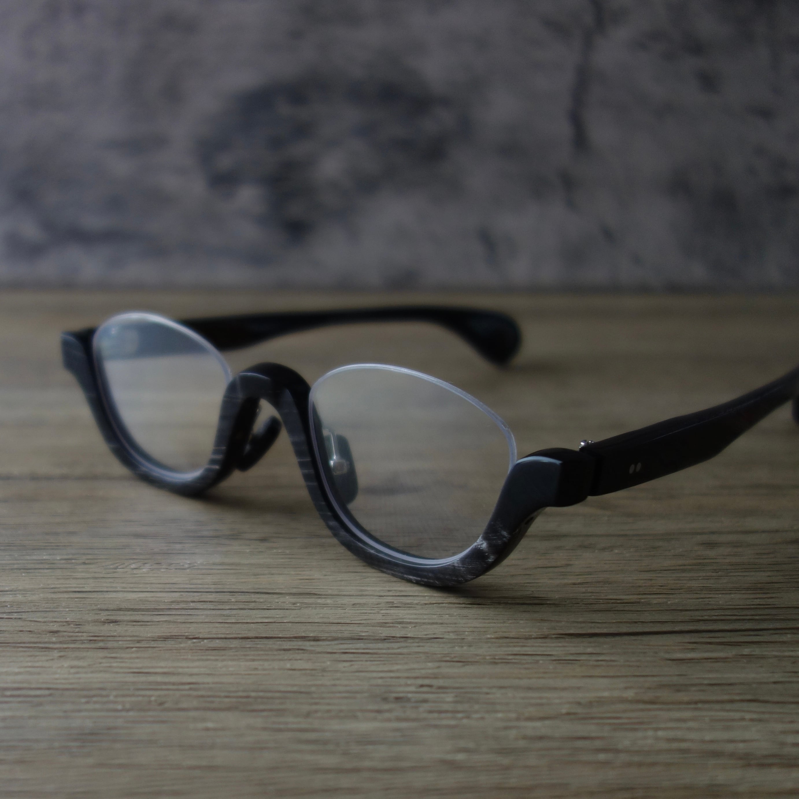 現在流通しているプラスチック製の眼鏡が出来る前の時代では、べっ甲や角などの天然素材を使った眼鏡が主流でした。眼鏡に限らずプラスチック製品の流通に伴い、天然素材は希少品という立ち位置になりました。私たちは一点一点色柄が異なるバッファローホーンの美しさに惚れ込み、バッファローホーンの魅力を最大限に活かしたアイウェアを後世に残したいと思っております。