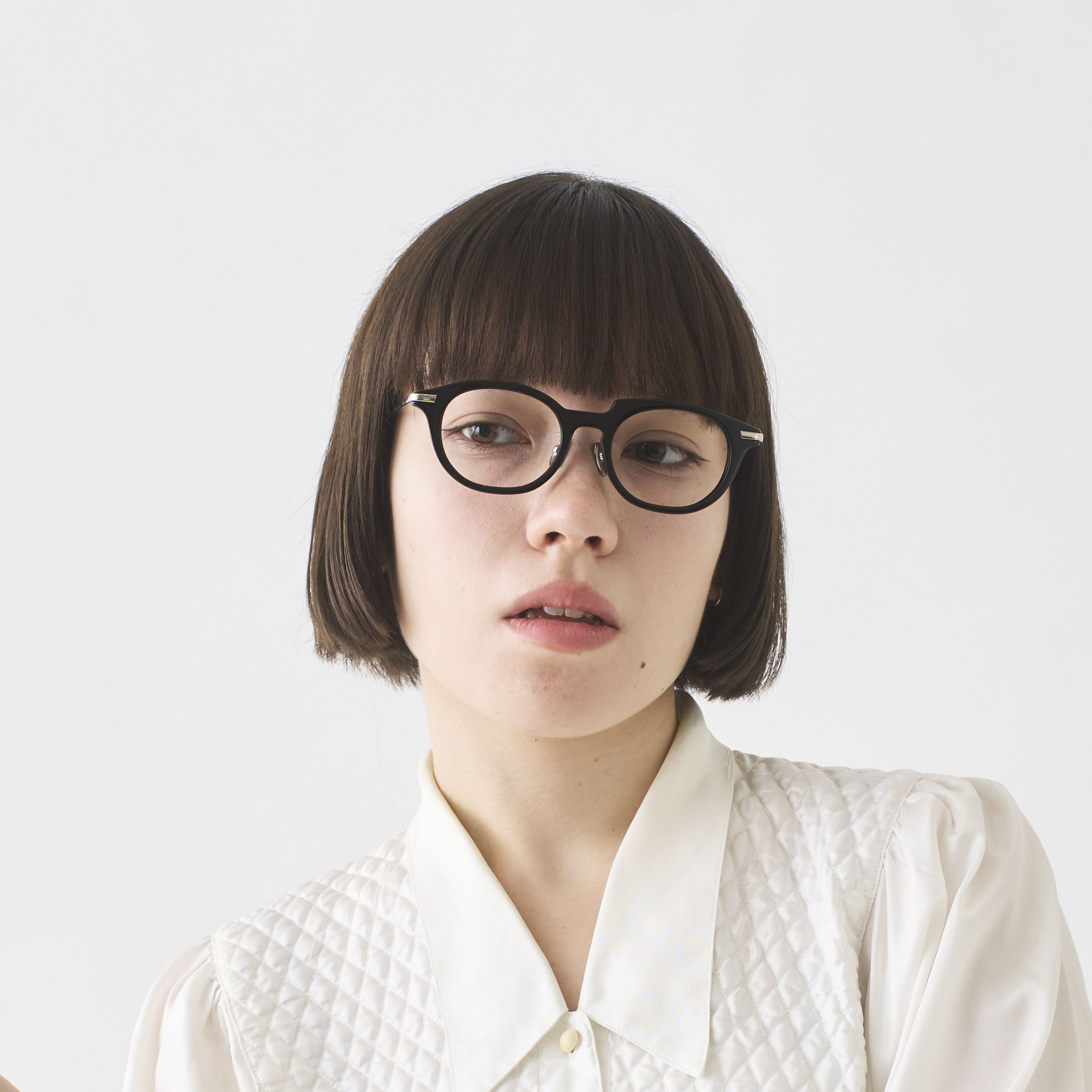 「無垢」をテーマにしたアシンメトリーコレクション。6mm厚の無骨なアセテート素材に、無垢のチタンを組み合わせております。素材に手を加え過ぎない事で、パドマイメージの肝である左右非対称のデザインを際立たせました。