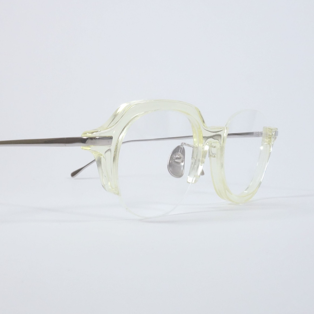 パドマイメージが5周年の時に生産したコンセプトモデルの復刻です。これまで生産してきたウエシタに比べ、ややコンパクトなサイズ感に仕上げております。名前の通り、上と下に分かれたリムのデザインが特徴的です。一見アンバランスに見えますが、枠のボリュームを左右で整えることで、着用時の違和感を抑えております。