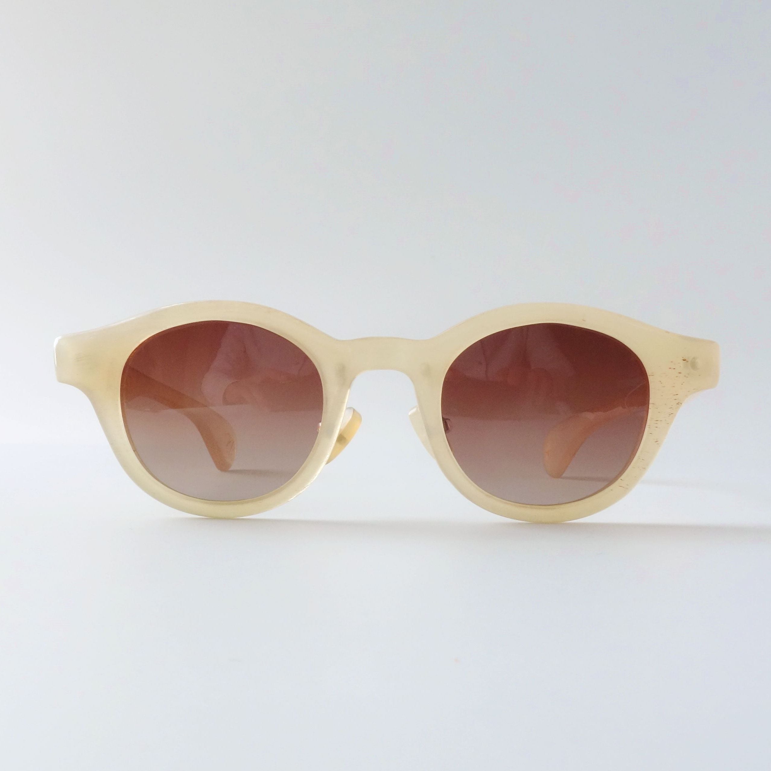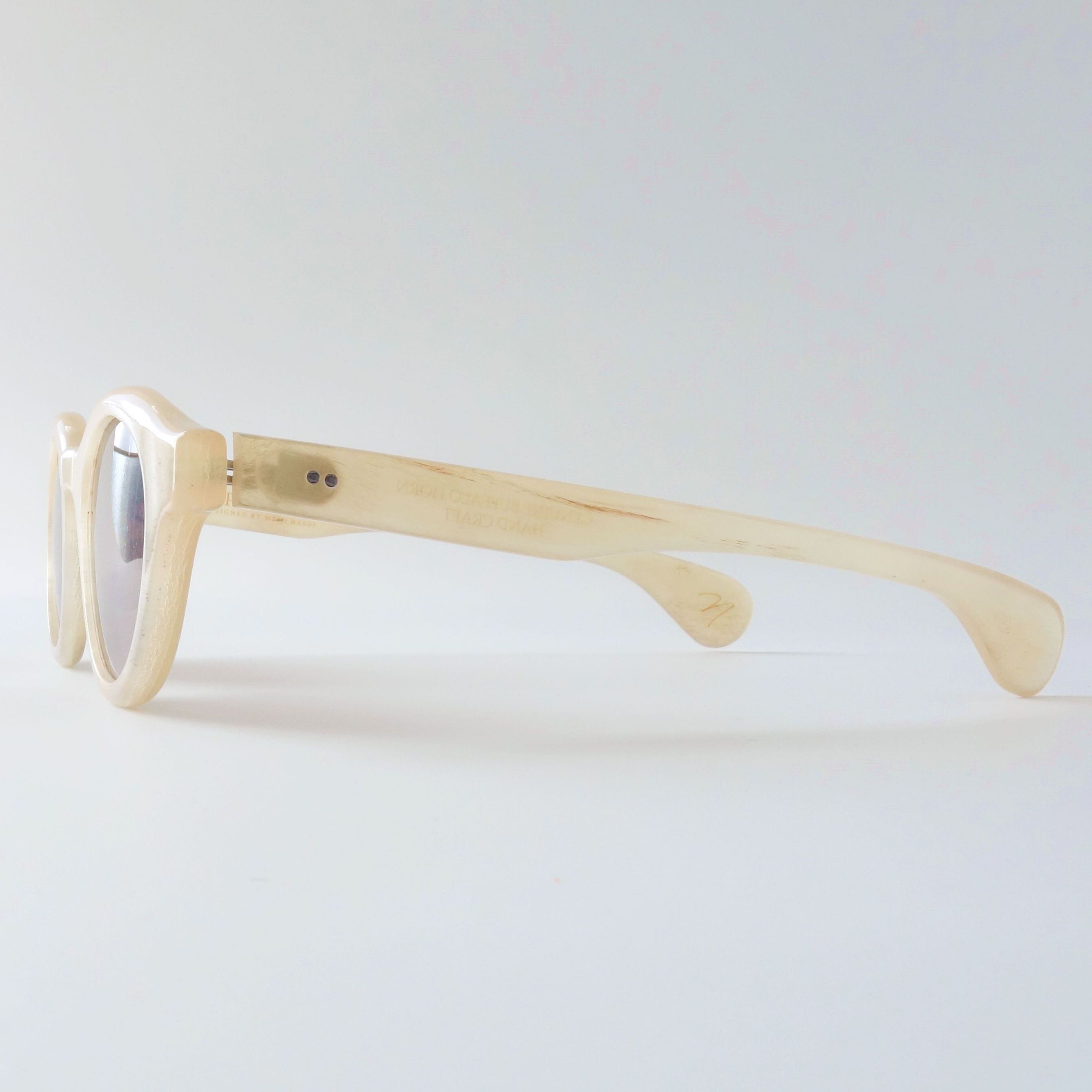 現在流通しているプラスチック製の眼鏡が出来る前の時代では、べっ甲や角などの天然素材を使った眼鏡が主流でした。眼鏡に限らずプラスチック製品の流通に伴い、天然素材は希少品という立ち位置になりました。私たちは一点一点色柄が異なるバッファローホーンの美しさに惚れ込み、バッファローホーンの魅力を最大限に活かしたアイウェアを後世に残したいと思っております。