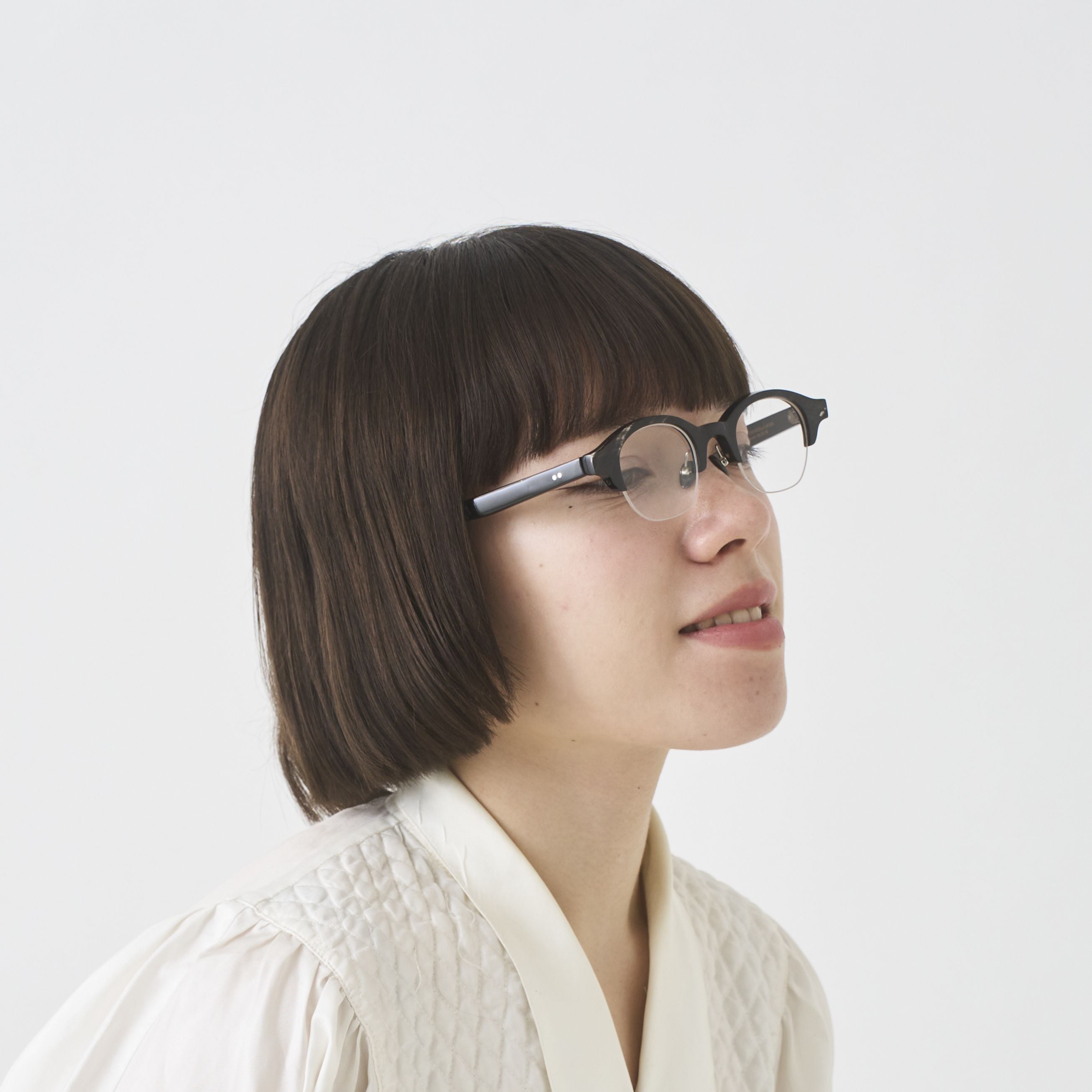 エヌプロダクトは水牛の角(バッファローホーン)製の眼鏡ブランドです。バッファローホーンは黒茶白のセピア調の色味で構成されており、それらの色が油絵のように重なり様々な表情を生み出します。バッファローホーンの先端部分はダッフルコートのボタンやピアス・アクセサリー等に加工されます。私達は眼鏡ブランドとしてのノウハウを活かし、厚みのある根元の部分を採用しアイウェアを製作しました。