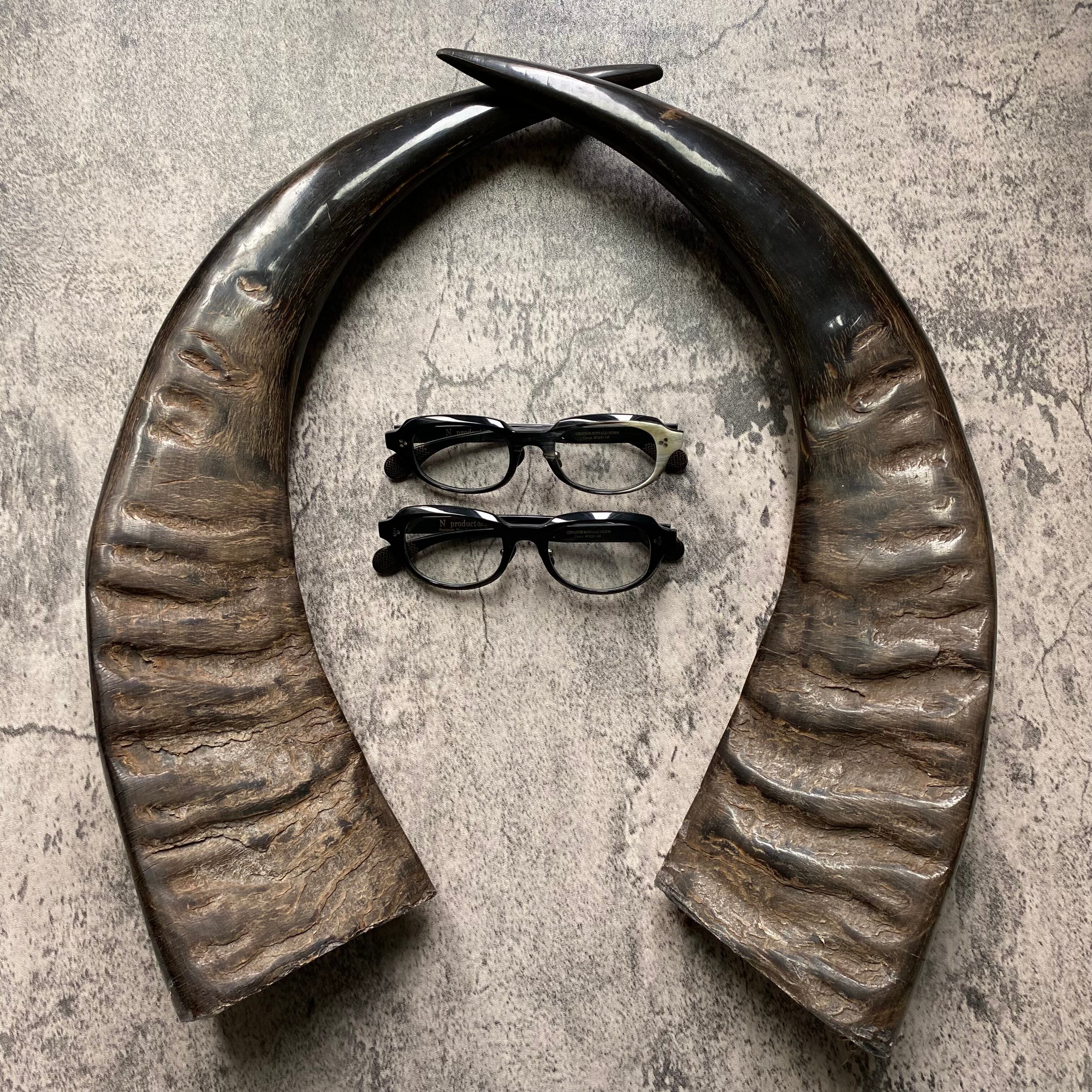 現在流通しているプラスチック製の眼鏡が出来る前の時代では、べっ甲や角などの天然素材を使った眼鏡が主流でした。眼鏡に限らずプラスチック製品の流通に伴い、天然素材は希少品という立ち位置になりました。私たちは一点一点色柄が異なるバッファローホーンの美しさに惚れ込み、バッファローホーンの魅力を最大限に活かしたアイウェアを後世に残したいと思っております。